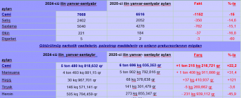 2025-ci ilin yanvar-sentyabr ayları ərzində narkomanlığa və narkotik vasitələrin, psixotrop maddələrin və onların prekursorlarının qanunsuz dövriyyəsinə qarşı mübarizənin nəticələri Dövlət Komissiyasının daimi fəaliyyət göstərən İşçi Qrupu tərəfindən müqayisəli şəkildə təhlil edilərək ümumiləşdirilmişdir.