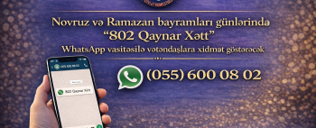 Bayram Günlərində "802 Qaynar Xətt" WhatsApp üzərindən vətəndaşlara xidmət göstərəcək