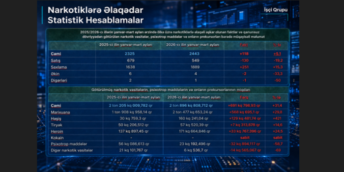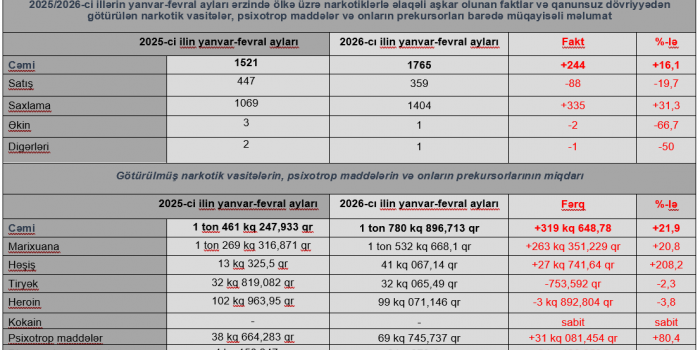 Narkomanlığa və narkotik vasitələrin qanunsuz dövriyyəsinə qarşı mübarizə üzrə 2026-cı ilin yanvar ayının yekununa dair məlumat...